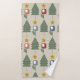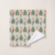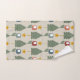 Este conjunto de toalhas tem uma design moderna do século médio de árvores feitas de triângulos, flores feitas de praças e ovais, e estrelas em verdes, azuis e amarelas.