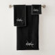Monograma de seu nome e inicial em cinzas e texto de roteiro branco em conjunto simples de toalha de banho preto.