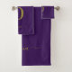 Conjunto De Toalhas Nome do Script Monograma Personalizado Roxo E Dour