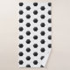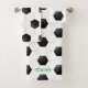Padrão de Bola de Futebol em branco clássico e preto com NOME verde personalizado no fundo da toalha de banho. Fácil de personalizar texto, cor de texto. O Decor do Banheiro das Crianças Divertidas para as crianças de futebol e esportes. Muitas peças de coordenação. Misturar e combinar coleções inteiras de esportes / Liga Pequena / Futebol por TMCdesigns.