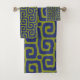 olive green and blue abstract pattern bath towel set .