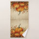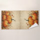Toalha com ilustração rústica com abóboras laranja e folhas de queda. Uma vibração do outono.