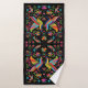 Ele apresenta um Impressão de Otomi mexicano com Pássaros e Flores em cores brilhantes...num fundo negro!