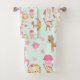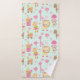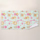 Toalhas com um padrão cômico que inclui uma coleção de brinquedos e animais deliciosos para crianças.
