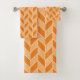 Este conjunto de toalhas de banho apresenta um padrão geométrico de herringbone em pêssego, laranja e branco.