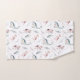 Um padrão de dinossauro bonito em uma toalha branca neutra do banheiro de fundo.