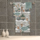 Se você está se perguntando que combinações de cores escolher para sua decoração de Natal e presentes este ano, eu criei coleções de padrões coordenadores para tornar a vida um pouco mais fácil. Este padrão branco de toalha de banho de um caminhão-safra e crianças brincando de neve é mostrado aqui em uma paleta colorida de tons de terra quente. Foi fornecido um modelo para adicionar o seu nome. Procure ID1009 para ver outros produtos e padrões neste esquema de cores.