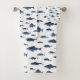 Conjunto De Toalhas Padrão de Peixe Branco e Azul Costeiro