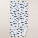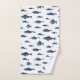 Uma bela toalha de banho azul e branca, com um mar azul de peixe azul.