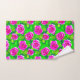 Toalha em um padrão de cor rosa-d'água, cor-de-rosa-fuchsia profunda, rosas com folhas em tons de verde-esmeralda