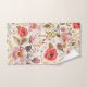 Conjunto de toalhas de banho bonitas apresenta cores de outono em aquarela de vinho tinto profundo, flores de ameixa com folhagem.