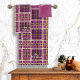 Se você está se perguntando que combinações de cores escolher para sua decoração de Natal e presentes este ano, eu criei coleções de padrões coordenadores para tornar a vida um pouco mais fácil. Este conjunto de toalhas apresenta uma design xadrez moderna, aconchegante, mostrada aqui em uma magenta e uma paleta dourada. Adicione uma mensagem e um nome usando o modelo fornecido. Procure ID1009 para ver outros produtos e padrões neste esquema de cores.