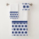 Conjunto De Toalhas Padrão hexagonal branco e azul marinho