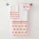 Uma toalha de banheiro com padrão hexagonal branca e damasco.