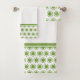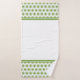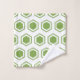 Uma toalha de banheiro verde e branco com padrão hexagonal.