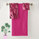Vire seu banheiro com este moderno e bonito conjunto de toalhas rosa. A toalha de mão e o pano de face apresentam um padrão moderno mínimo de rúfugos de seda, e a toalha de banho é uma fúsia sólida. Elegante e ousado, essas toalhas de moda são o complemento perfeito para um banheiro feminino. Très Chic!