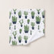 Toalhas de banho com um sabor ocidental rústico. Projetado com um monte de cactos verdes bonitos em um padrão repetitivo. Especificamente, cacto cor verde picante, em todos os tipos de formas e tamanhos, cada um sentado no seu pote de flor azul escura. Pequenos triângulos decorativos entre eles. Ilustração engraçada.