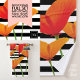 Ouro de laranja e papoila vermelha pop contra listras brancas e pretas chic para um estilo ousado de verão elegantemente terminou com seu monograma dentro um quadrado preto pequeno e clássico. ♡ Idyllfire