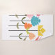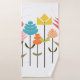 Este conjunto de toalhas tem um pano de lavagem laranja claro, uma toalha laranja mais escura, e uma toalha de banho com um design de flor moderno século médio feito de praças, ovais e diamantes que foram manipulados para formar flores.