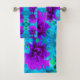 Este conjunto de toalhas de banho florais coloridas apresenta uma Peônia Roxa Temperamental com Folhagem Bonita e sotaques em Chartreuse, Azul e Magenta. O resultado é um design floral lindo, colorido e que você vai adorar!