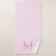 Add a touch of elegance to your bathroom with this personalized monogram bath towel set. Featuring a soft pink and white striped background, each towel is customized with your monogram initial and name in a fancy script font for a timeless, feminine look.