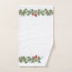 Elevem a decoração da casa de banho de férias com esta toalha de Natal personalizada em branco com belos pinecones e holly. Uma toalha tem um lindo Cardeal vermelho no centro da garland.