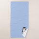 Pinguim bonito segurando um coração no conjunto de toalhas azul claro. Ideal para todos.