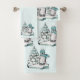 Procurando as toalhas de Natal? Um arranjo de Aquarela fofo de um pinguim vestindo um gorro quente e cachecol numa prancha ártica de neve com uma árvore de Natal coberta de neve. Este conjunto de toalhas de Bath faz um presente perfeito para as crianças neste feriado ou nos acessórios de casa-de-banho de inverno.