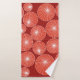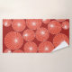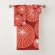 Este conjunto de toalhas tem uma design moderna do século médio de círculos vermelhos com estrelas brancas dentro deles, tudo num campo de tijolo.