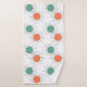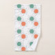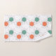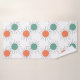 Este conjunto de toalhas tem uma design moderna do século médio de círculos com linhas atrás em laranja e verde.