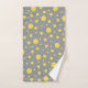 Bring a contemporary splash of color into your bathroom with this eye-catching yellow and gray polka dot pattern bath towel set. The design features a bold, graphic mix of different-sized lemon yellow dots scattered playfully across a chic, neutral dark gray background. This trendy, modern design is perfect for adding a fun, gender-neutral accent to your master or guest bathroom decor. A unique, stylish way to refresh your space or give as a housewarming gift.