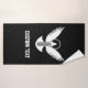 Pomba voadora com ícone de chave simples. Texto personalizado.