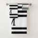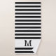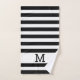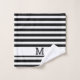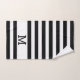 A toalha em preto e branco, toalha em tiras, personalizada com o seu monograma inicial.