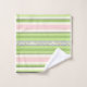 Design de tecido riscado em tons pastéis de verde, rosa e amarelo com padrão floral, inspirado pela decoração de Taj Mahal.