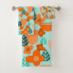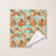 Este conjunto de toalhas tem um design escandinavo de flores e folhas em vários tons de laranja e lacre.