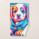 Design de arte colorida e fofa de um filhote vestindo um casaco azul (Este Design feito com IA). Faça a ordem hoje e encare a alegria de Comprar!