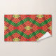 Um design colorido criado de bandas coloridas rasta de ouro vermelho e verde formando um padrão de diamante que é completamente único. Emparelhe isso com uma cortina de Chá e tapete de banho correspondente para uma transformação de banheiro completamente barato!