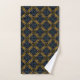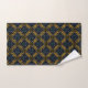 Uma toalha de padrão geométrico inspirada em africano, colocada em amarelo ouro com azul em preto para adicionar um elemento tribal legal a qualquer banheiro.