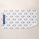 Toalha ajustada com três toalhas: um washcloth com listras de azuis marinhos e uma ilustração de um urso polar com uma pata imprimem; uma toalha de mão listrada com o mesmos olha; e uma toalha de banho que caracteriza um teste padrão de ursos polares em preto, em branco, e cinzas. Personalize com nome da sua criança em cada toalha.