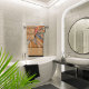 Façam uma declaração que nos lembra de nos acalmar e respirar. Este pano de lavagem, a mão e a toalha do corpo, com tons quentes e vibração relaxante, é certo que vai aumentar o seu espaço. Tonalidades neutras de cor laranja, âmbar queimado e bronzeado com sotaques pretos e raros raios solares num rosto de sol pacífico é um conjunto de toalhas único para se ter no seu banheiro!