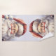 Conjunto de toalhas com uma ilustração do estilo de vintage. Um retrato de Papais noeis com sua grande barba branca vestindo seu clássico chapéu vermelho de Papai Noel.