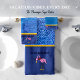 Conjunto De Toalhas Romantic Pink Flamingos with gold stripes blue