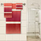 Uma bela toalha de banheiro listrada colocada em cores de burgundy e marfim com minúsculas linhas de ouro rosa.