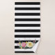 Adicione um toque de chic moderno à sua decoração com esta tenda toalha de banho horizontal, preto e branco, enfeitada com rosas românticas, rosa e amarelas. Personalize este lindo design floral listrado adicionando seu nome.