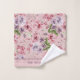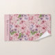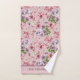 Belas flores rosa e roxas com folhagens neste conjunto de toalhas de banho. O conjunto inclui toalha de mão, toalha de banho e pano de limpeza. Monograma todos os três. Faz um ótimo presente de casamento para presente de chá de noiva.