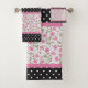 Conjunto De Toalhas Rosas Rosa E Bolinhas Pretas E Brancas