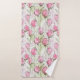 Conjunto de toalhas para banhos roseáveis cor-de-água rosa e verde. Projetado com motores rosebud de grande escala em pintas e verdes macios. Personalize a toalha da mão com seu nome ou monograma.