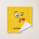 Um emoji beijador. Um olho está aberto, o outro está piscando. Um coração é mostrado deixando a boca beijando.