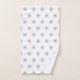 Um design de arte fractal em roxo e ouro é atirado através deste conjunto de toalhas de banho. O design tem um olhar floral. O fundo é branco. Acessórios correspondentes do banheiro estão disponíveis.