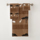 Este é um conjunto de toalhas fantástico que apresenta uma arte decorativa de padrão de um elefante e girafa jantando em uma árvore em preto e branco marrom.